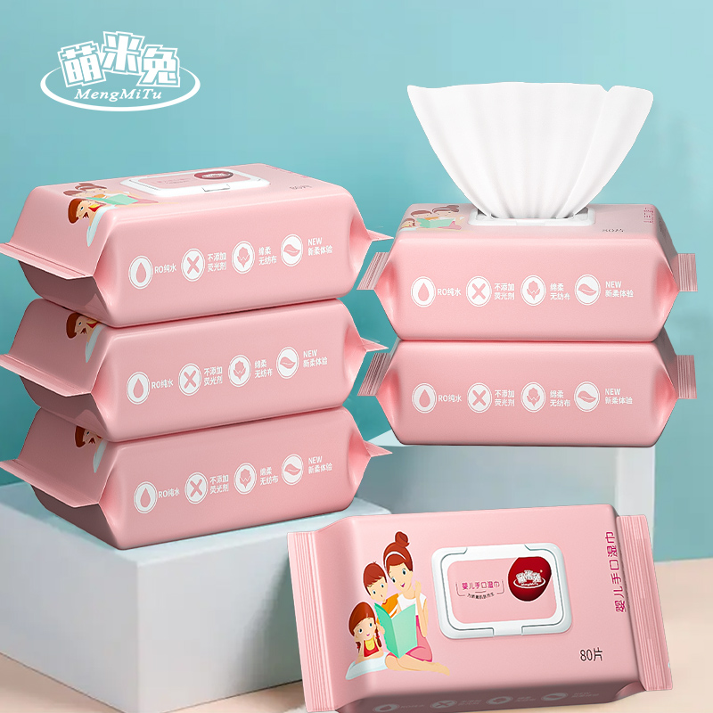 ¥9.99 6包萌米兔湿纸巾婴幼儿手口湿巾成人家庭装80抽 9.99