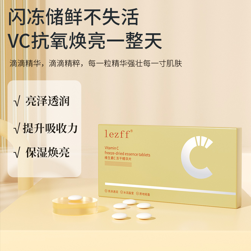 ¥9.90 【粉丝福利】lezff维生素C冻干精华片补水保湿提亮肤色嫩肤涂抹 9.90