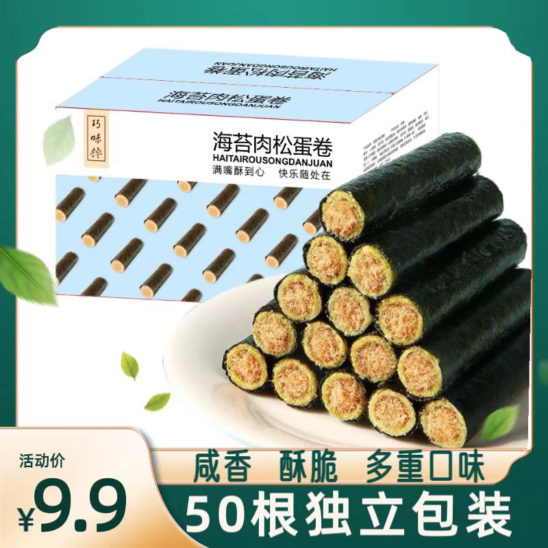 ¥9.90 【专属福利】海苔肉松蛋卷咸香酥脆儿童零食夹心肉松蛋卷整箱50根 9.90