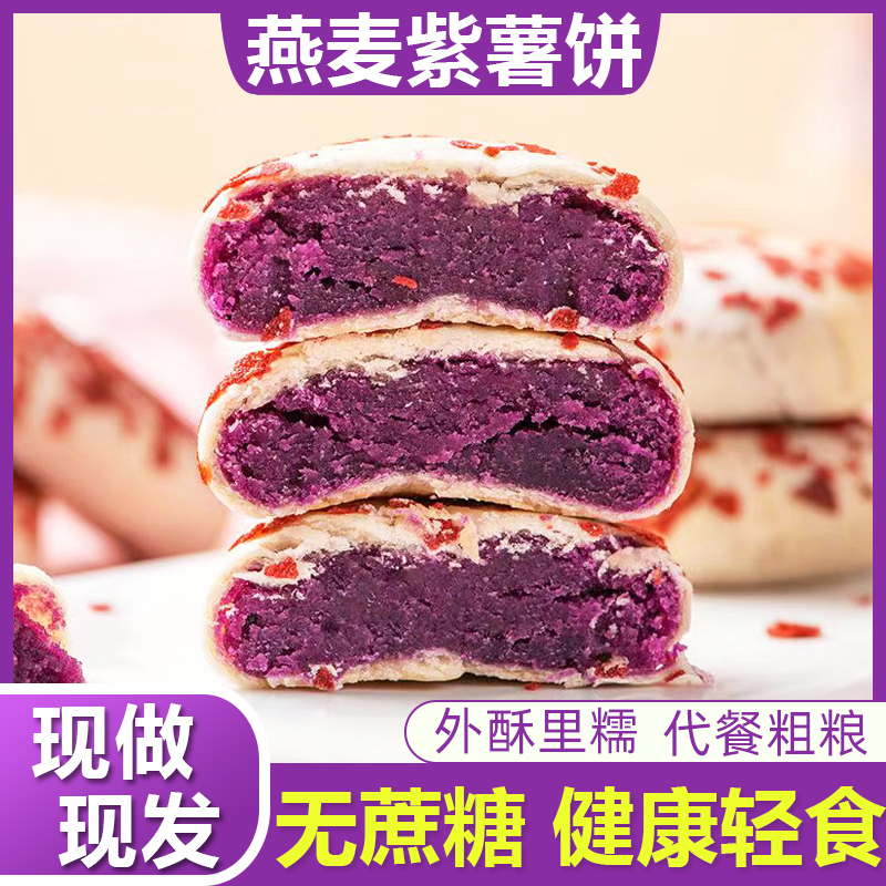 ¥9.90 燕麦紫薯饼无添加蔗糖健康轻食早餐代餐饱腹感零食小吃休闲食品 9.90