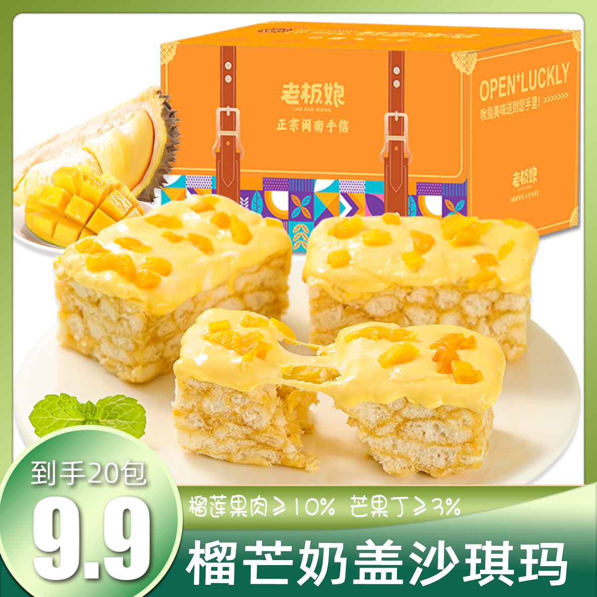 ¥19.90 【宠粉福利】榴莲芒果双拼奶盖沙琪玛休闲零食 19.90