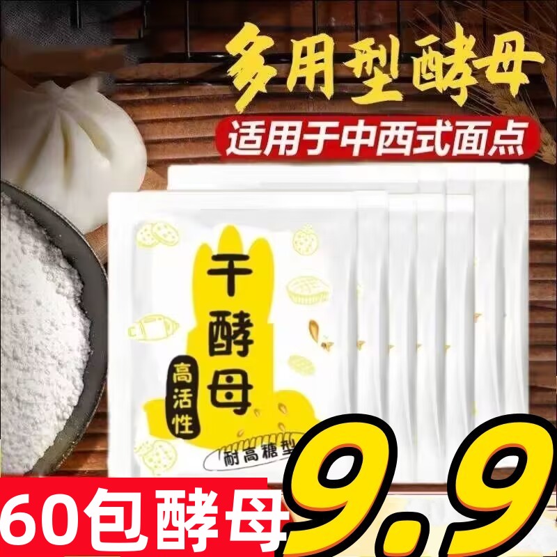 ¥9.90 9.9元60包耐高糖高活性干酵母菌馒头包子发酵粉家用孝母发孝粉 10.90