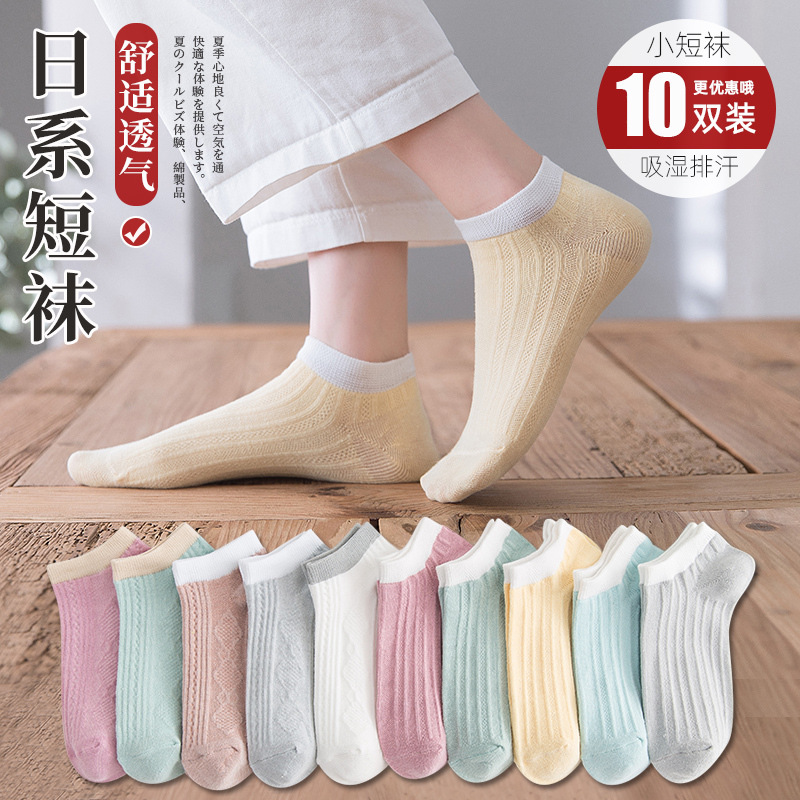 ¥9.90 【9.9元10双】马卡龙色系袜子女短筒袜春夏季糖果色系薄款透气 9.90