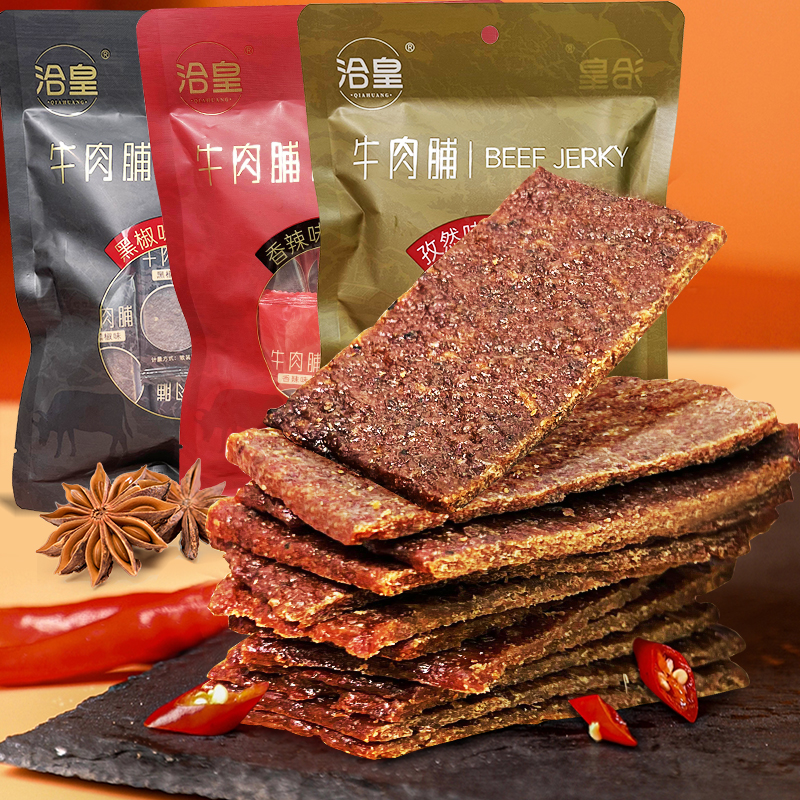 ¥15.90 洽皇牛肉脯零食小吃休闲食品解馋追剧香辣牛肉干办公室零食推荐 15.90