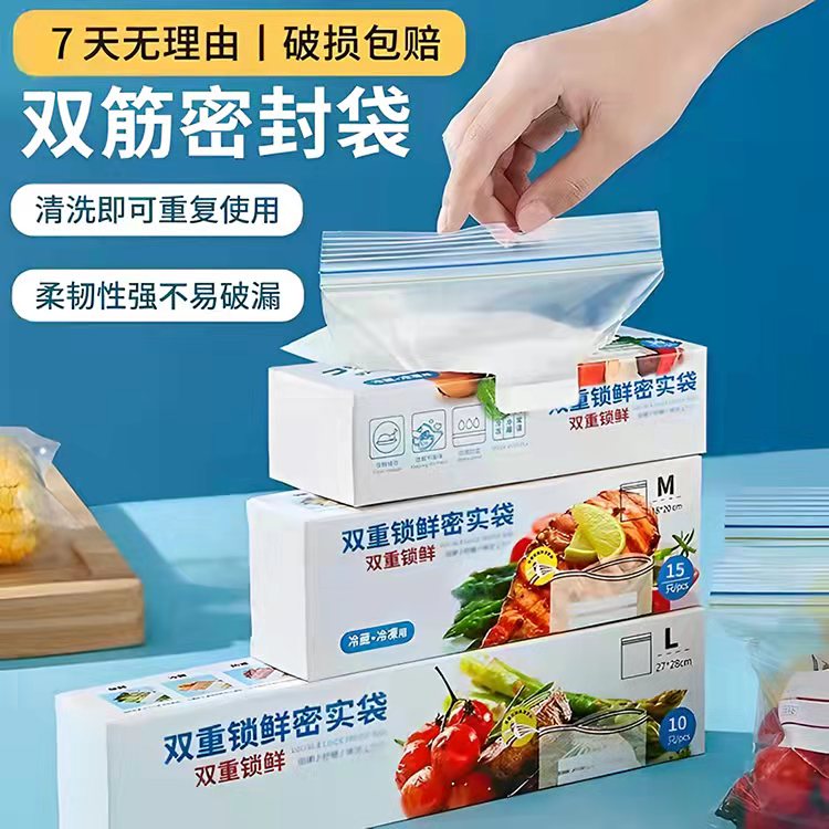 ¥20.00 【外贸品质】11盒共165只食品双筋加厚加大密封收纳袋 20.00