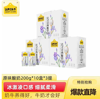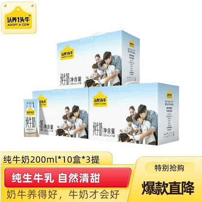 认养一头牛 全脂纯牛奶200ml*10盒*3箱