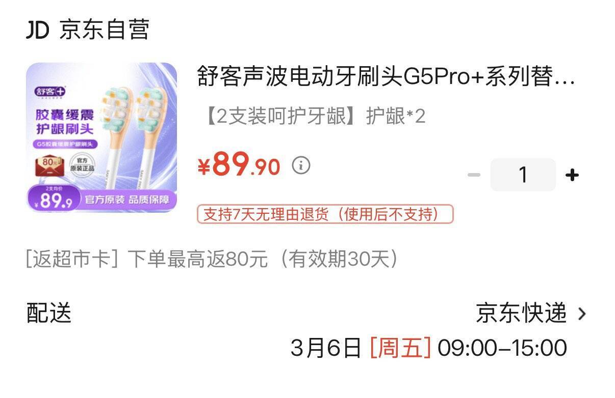 舒客 G5Pro+ 电动牙刷头 2 个装,拍后仅 9.9 元!