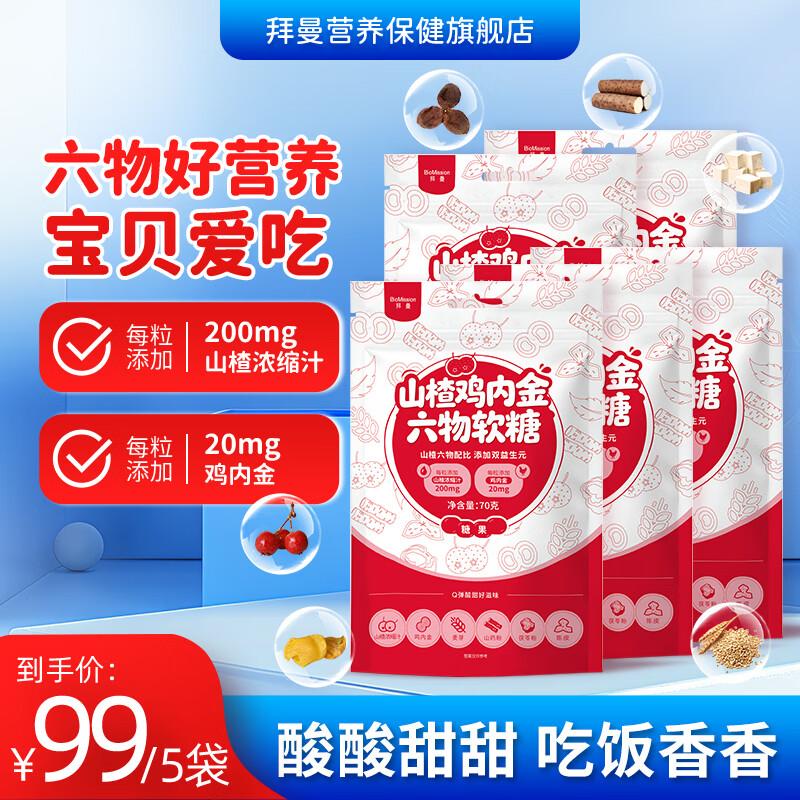拜曼山楂鸡内金软糖70g*5袋,到手价59元