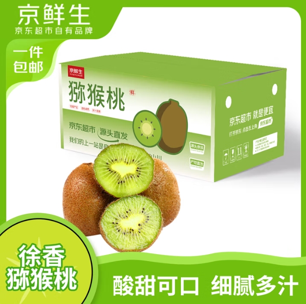 19元包邮!自营京鲜生 陕西徐香绿心猕猴桃30枚 单果70g
