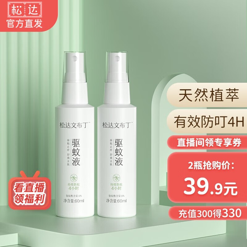 ¥29.9 松达驱蚊液蚊香液驱蚊神器儿童婴儿防蚊喷雾 户外防蚊虫叮咬 驱蚊液60ml*2瓶 69.9
