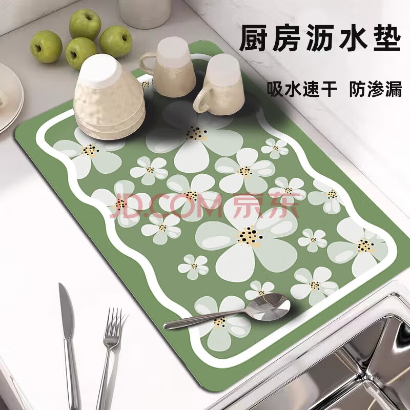 ¥14.9 德梵蒂硅藻泥厨房沥水垫台面吸水桌垫家用杯碗碟干燥垫防滑防污餐桌 2个装 24.9