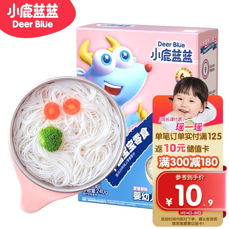 ¥7.8 小鹿蓝蓝_婴幼儿面条 麦香原味 宝宝辅食10cm儿童营养线面易咀嚼 240g 25.8
