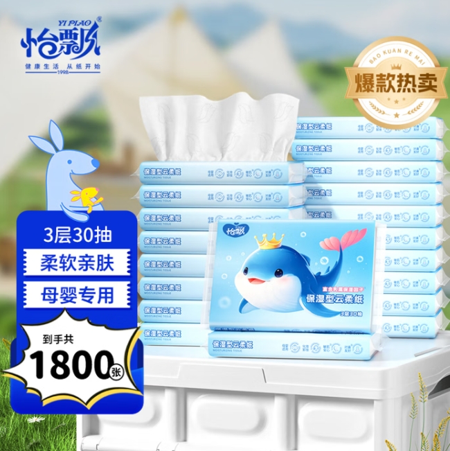 0.4/包!怡飘乳霜纸3层*50抽(含赠)