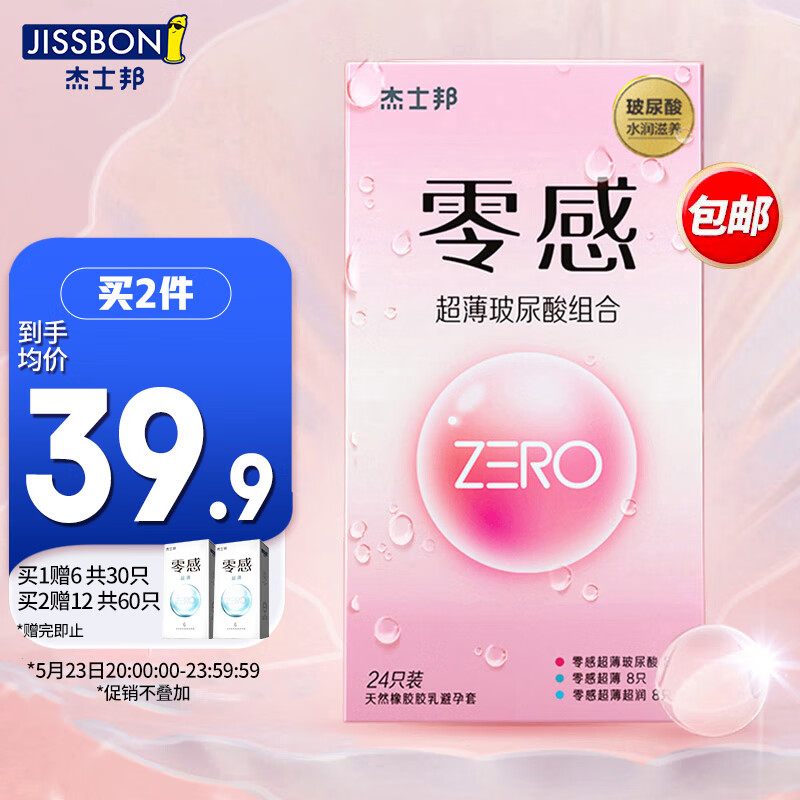 ¥44.91 杰士邦 避孕套 安全套 玻尿酸避孕套超薄组合30只(含赠6只) ZERO零感安全套 套套 男用女用 成人计生用品 64.91