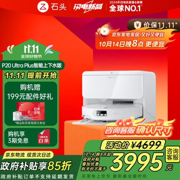 3188元!Roborock 石头 P20 Ultra Plus 扫拖一体机