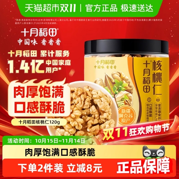 0~4元包邮!十月稻田 核桃仁120g