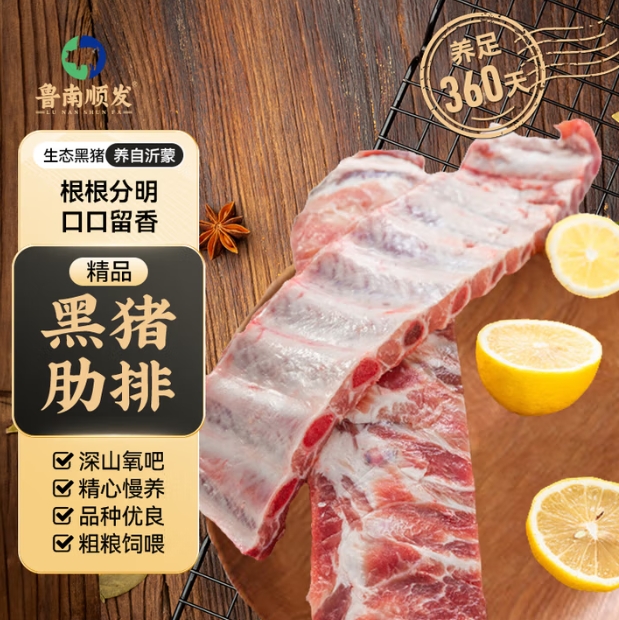 65.2元包邮!鲁南顺发 生态黑猪精肋排2kg