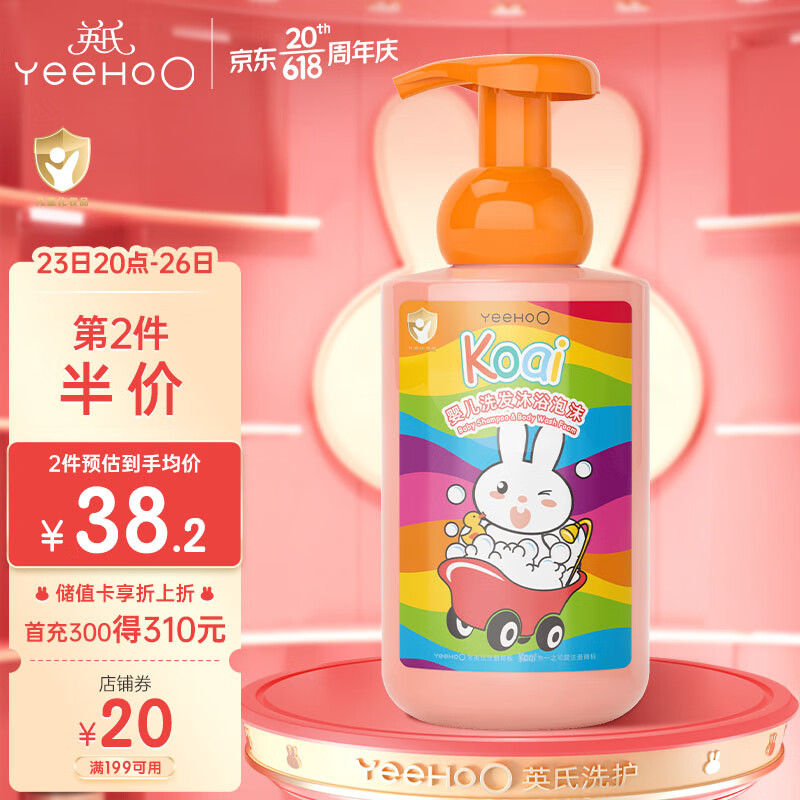 ¥49.9 英氏婴儿金盏花洗发沐浴二合一泡沫新生儿童宝宝温和保湿沐浴露450ml 50.9