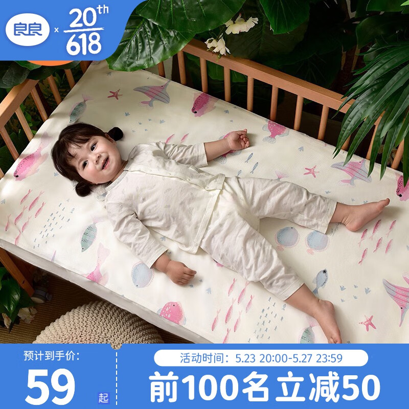 ¥89 良良(liangliang) 婴儿凉席冰丝 夏季竹纤维宝宝凉席垫 新生儿床品垫子 幼儿园床 奇幻远洋 110*60cm 109