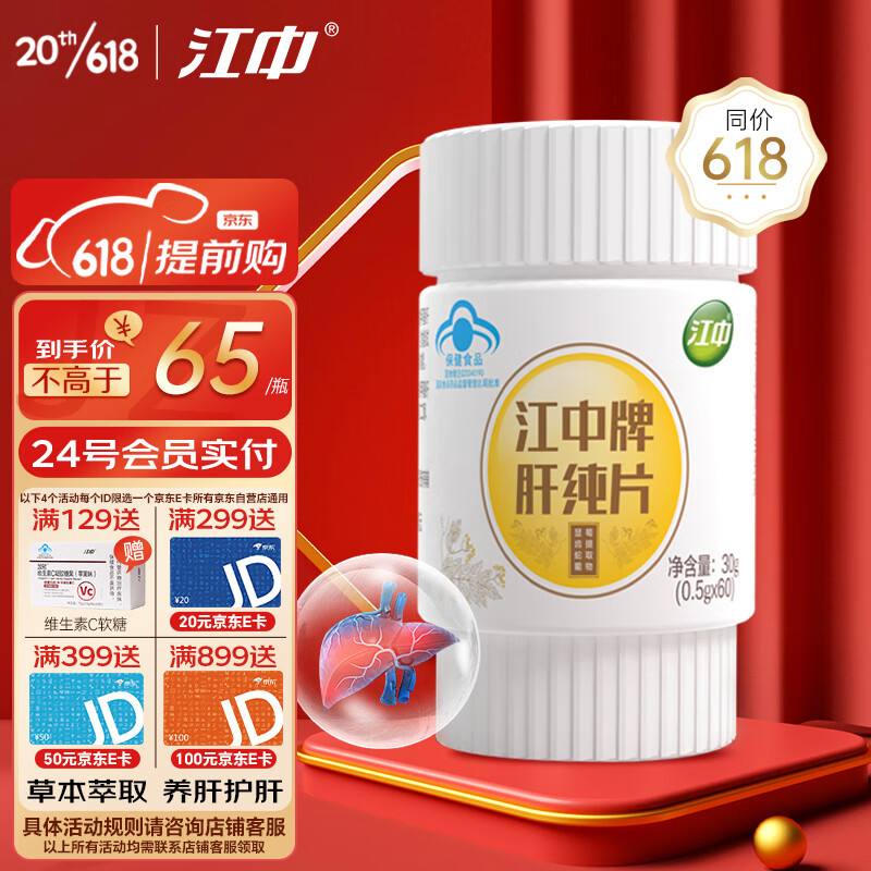 ¥120 江中牌护肝纯片 辅助保护化学性肝损伤 成人加班熬夜解烟酒男士酒后喝酒应酬养肝护肝片葛根护肝茶一同使用 125