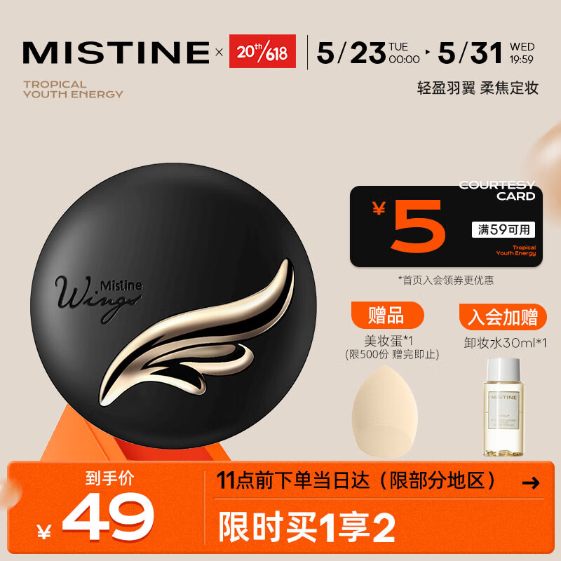 ¥61 Mistine蜜丝婷轻薄羽翼粉饼S1 10g 象牙白控油遮瑕 干湿两用 泰国进口 69