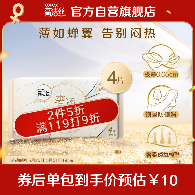 ¥22.9 高洁丝(Kotex)奢透蝉翼极薄棉柔卫生巾420mm4P薄如蝉翼 告别闷热 奢柔透气 24.9