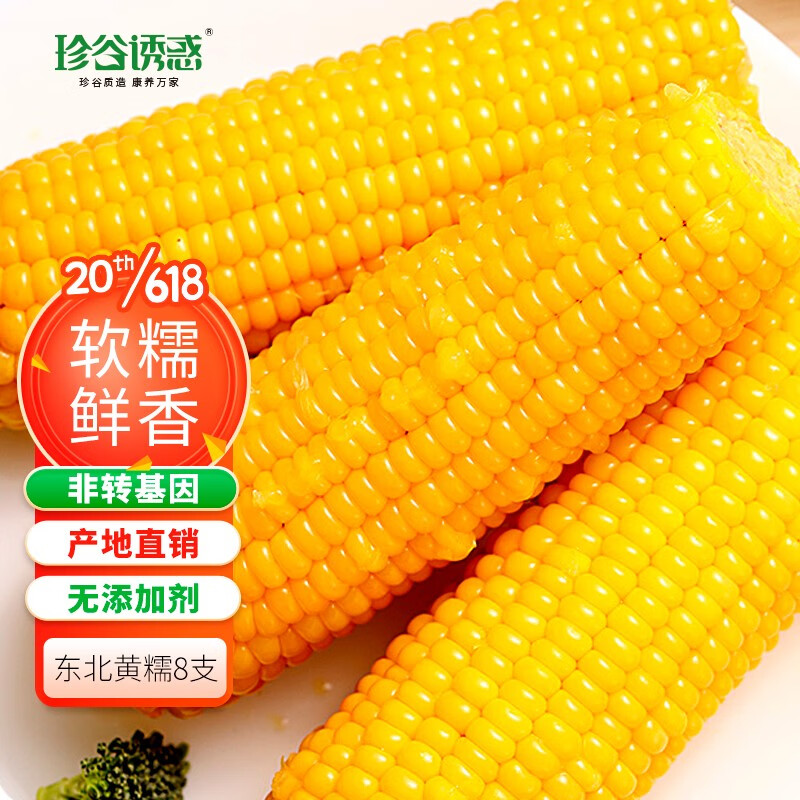 ¥26.9 珍谷诱惑 东北黄糯玉米棒 新鲜甜糯粘苞米穗 黄糯玉米8支 31.9