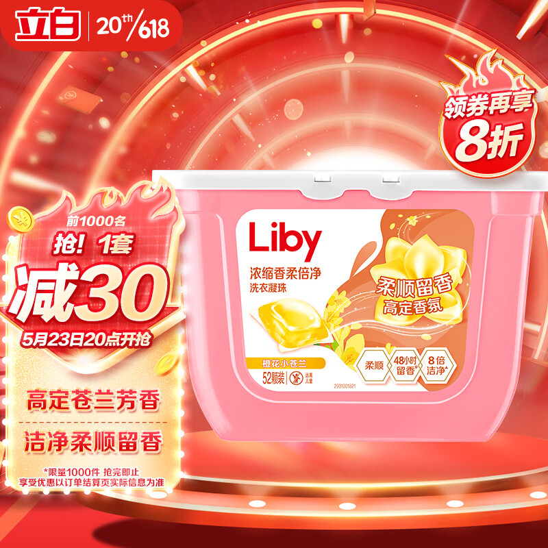 ¥59.1 立白洗衣凝珠 小苍兰香氛 持久留香 浓缩洗衣液 洗衣球 52颗 64.9