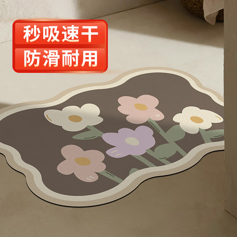 ¥12.9 慢說 软硅藻泥吸水地垫入户门卫生间厨房脚垫速干浴室厕所家用防滑垫 莫兰迪彩色小花 40cm*60cm 29.9