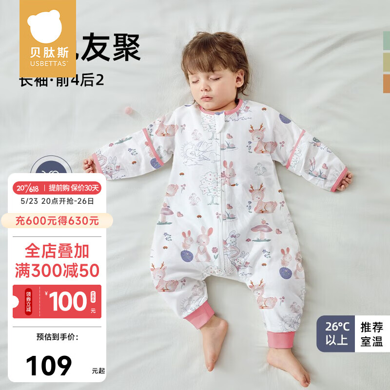 ¥109 贝肽斯婴儿睡袋夏季国风款纱布春夏四季通用儿童防踢被分腿宝宝睡袋 夏凉 26°+ 萌兔 S码 建议身高65-80cm 209