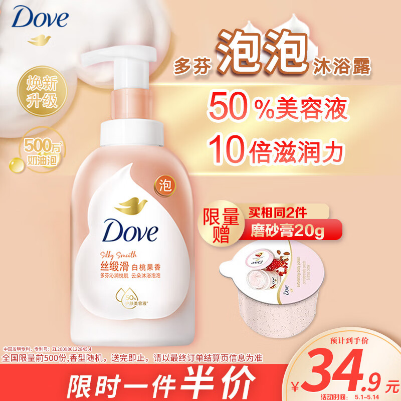 ¥64.9 多芬绵密泡沫泡泡沐浴露 白桃果香400ml滋润持久留香(包装随机) 69.9