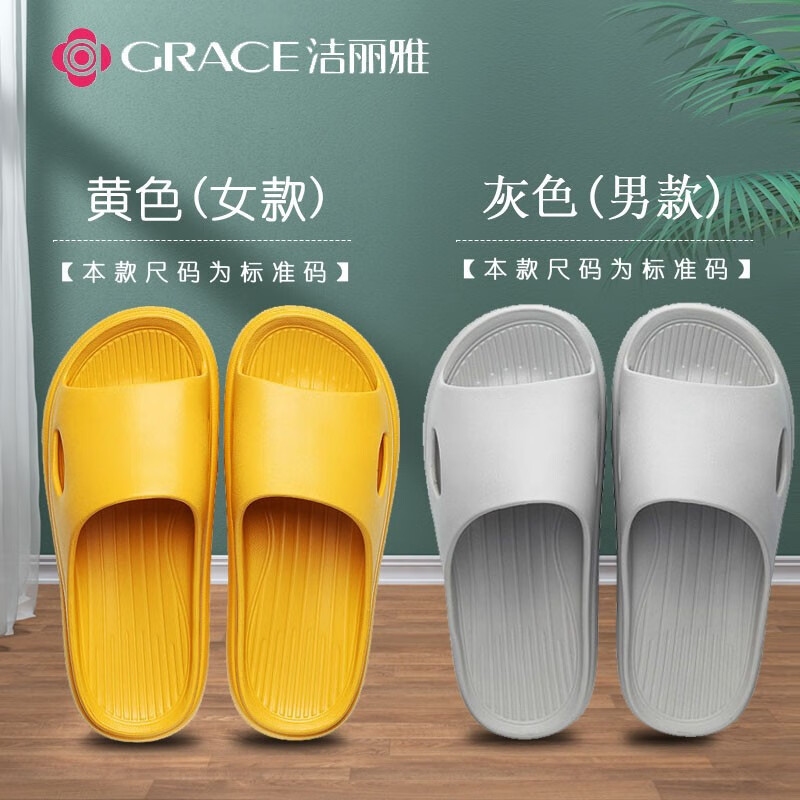 ¥18.9 洁丽雅(grace)【两双】拖鞋男女夏天防臭家居家用室内浴室洗澡情侣防滑脚防臭 黄色+灰色【两双装】 女38-39+男40-41 20.9