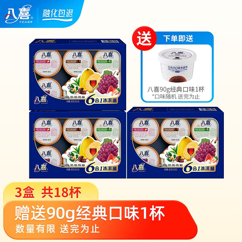 ¥89.8 八喜牛奶冰淇淋经典六合一18杯 119.8