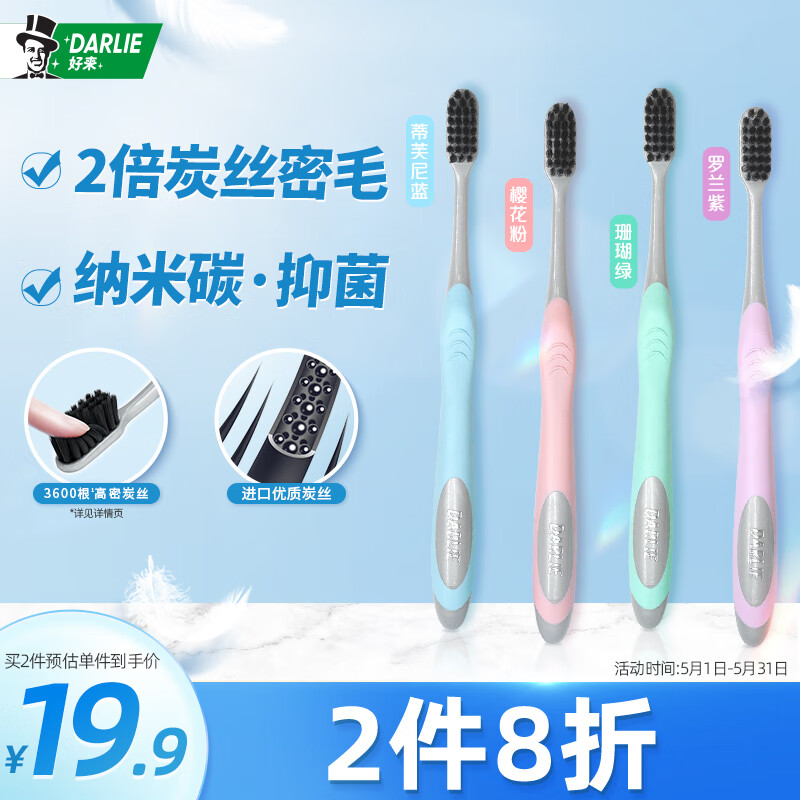¥19.9 DARLIE好来(原黑人)炭丝高密牙刷4支 小刷头 纳米炭 新旧包装随机 24.9