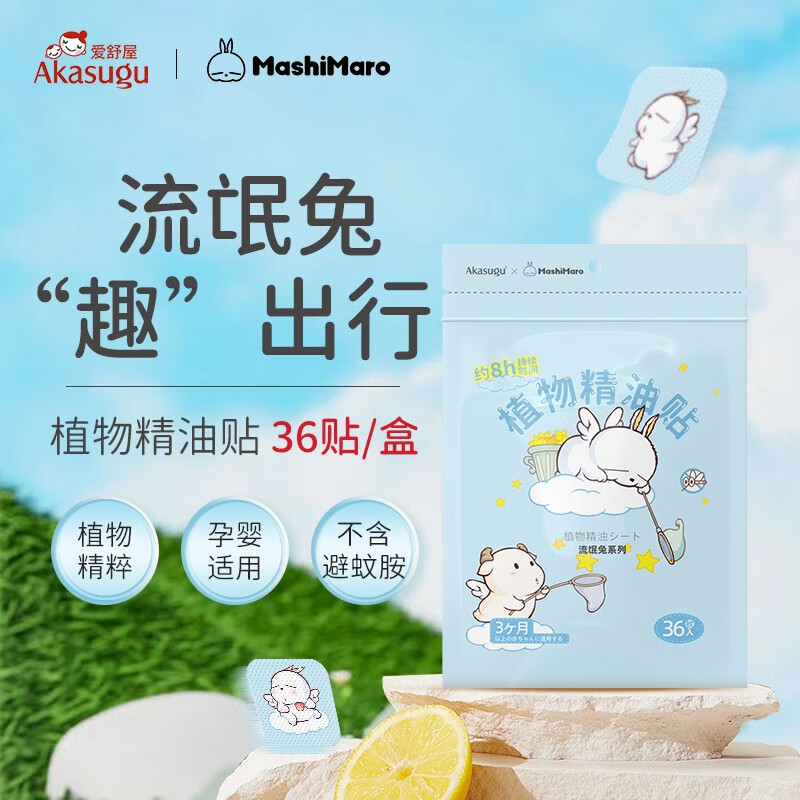 ¥19.7 Akasugu爱舒屋植物精油贴 蚊子贴 婴儿专用儿童孕妇防蚊户外防叮随身贴 防叮贴3袋装(36枚/袋) 39.7