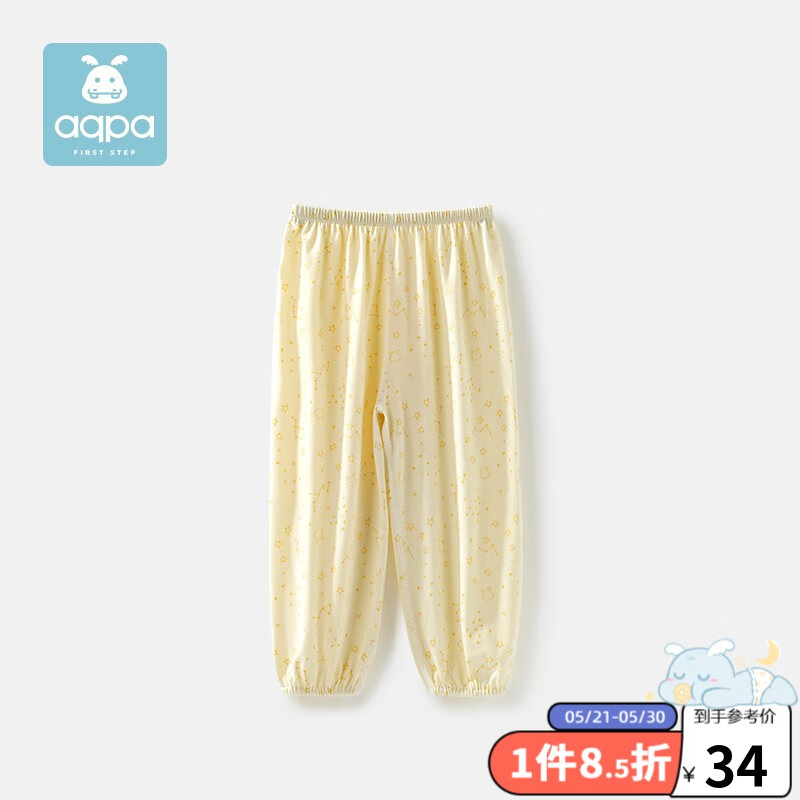 ¥29 aqpa【星座系列+4色可选】婴儿夏季纯棉防蚊裤幼儿长裤男女宝宝裤子 黄色 90cm 39
