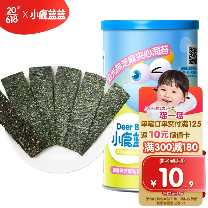 ¥9.9 小鹿蓝蓝_黑芝麻海苔夹心脆 儿童零食宝宝海苔酥脆口感罐装即食 40g 26.9