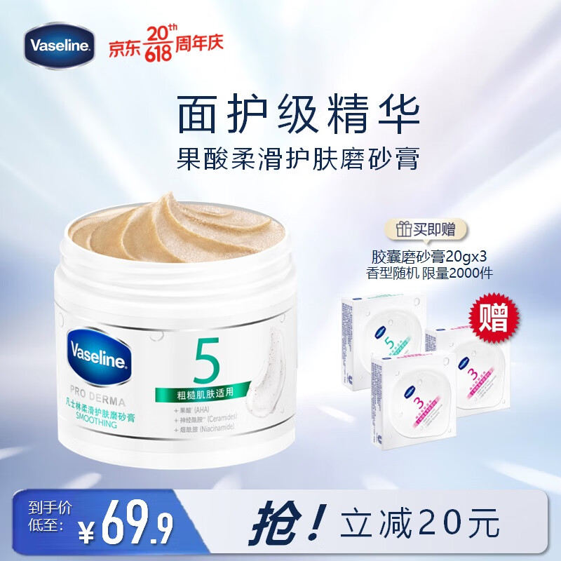 ¥79.9 凡士林柔滑护肤身体磨砂膏240g 添加果酸精华+神经酰胺+天然红糖 89.9