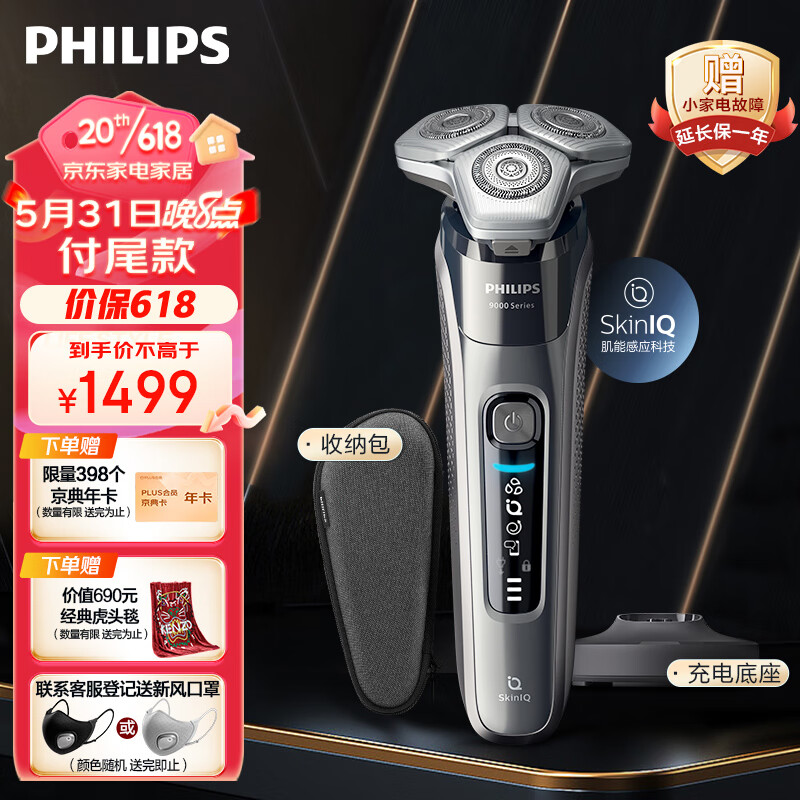¥2089 飞利浦(PHILIPS)电动剃须刀蜂巢9系 SkinIQ高端智能刮胡刀 【送男友 送老公】 2099