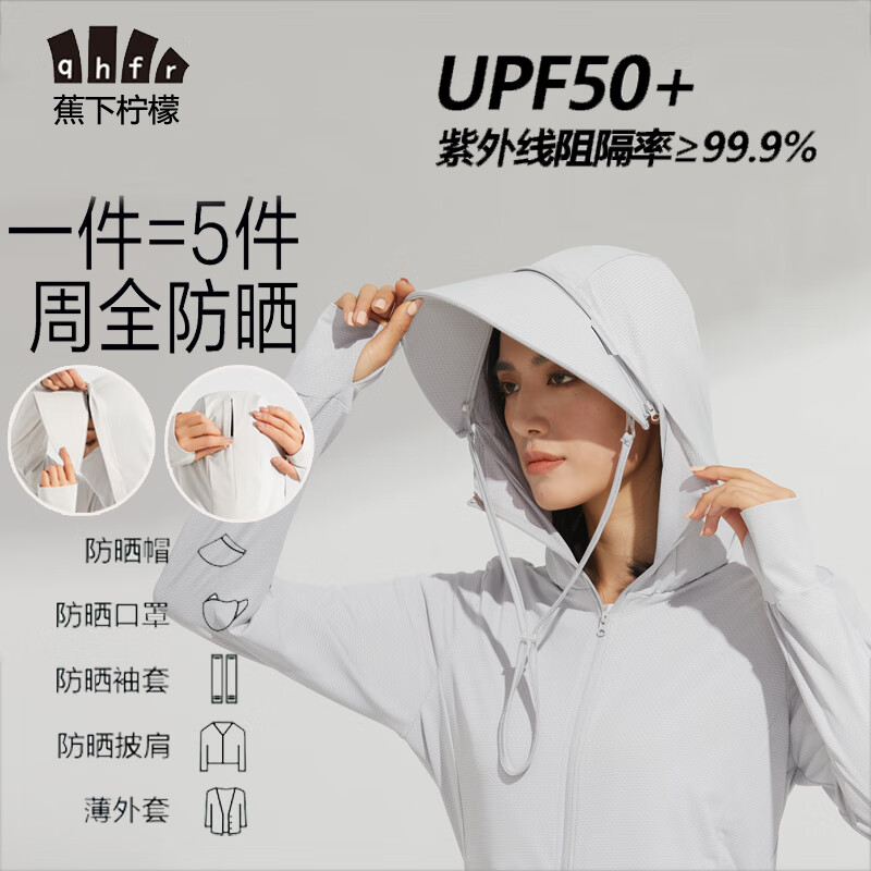 ¥49.9 蕉下柠檬(QHFR)防晒衣女男夏季薄款防紫外线可拆外套冰丝透气皮肤风衣防晒服骑行 69.9