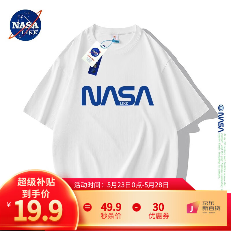 ¥19.9 NASALIKE重磅纯棉短袖t恤男女夏季宽松圆领打底衫休闲情侣oversize半袖衣 白色 XL 推荐130-150斤 49.9