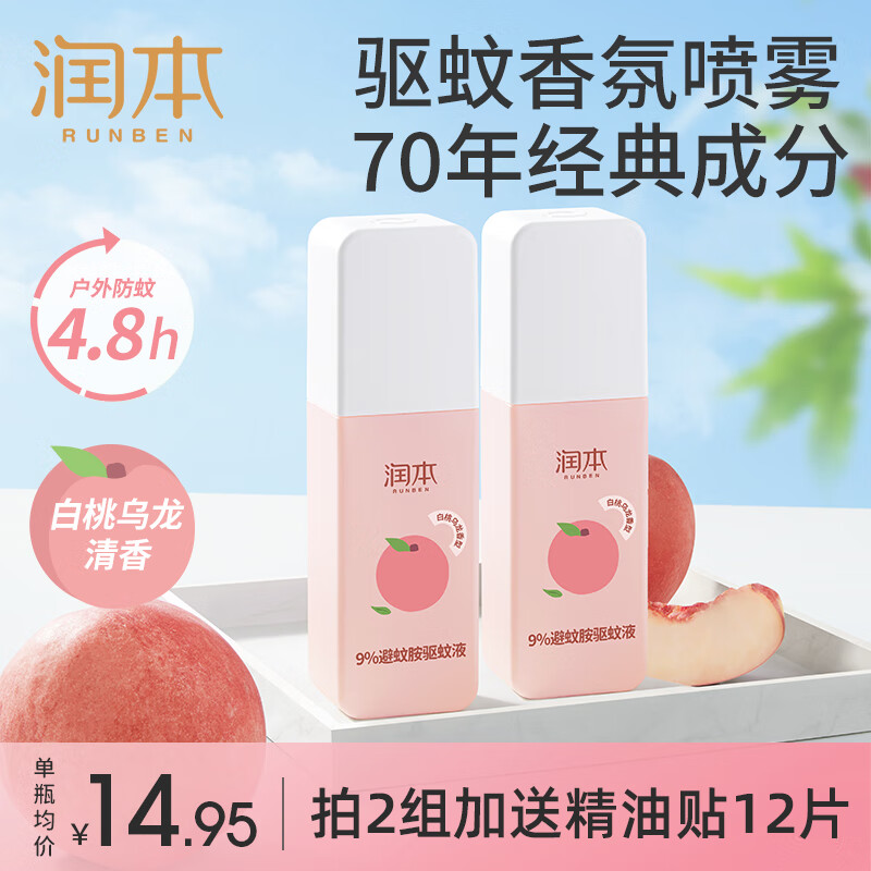¥21.9 润本(RUNBEN)驱蚊喷雾成人户外防蚊喷雾驱蚊水9%避蚊胺花露水驱蚊液防蚊虫叮咬 75ml×2瓶【建议拍2瓶】 31.9