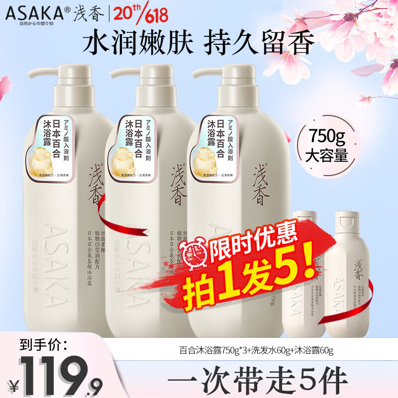 ¥126.1 浅香(ASAKA)沐浴露氨基酸沐浴乳液男女香水香氛持久留香洗澡水750g去除异味 138