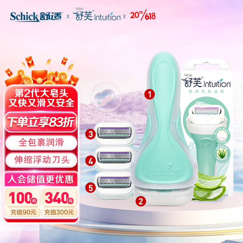 ¥116.1 舒适(Schick)舒芙女士大皂头敏感肌【1刀柄4刀头】手动脱毛刀剃毛刀腋下剃毛器 128