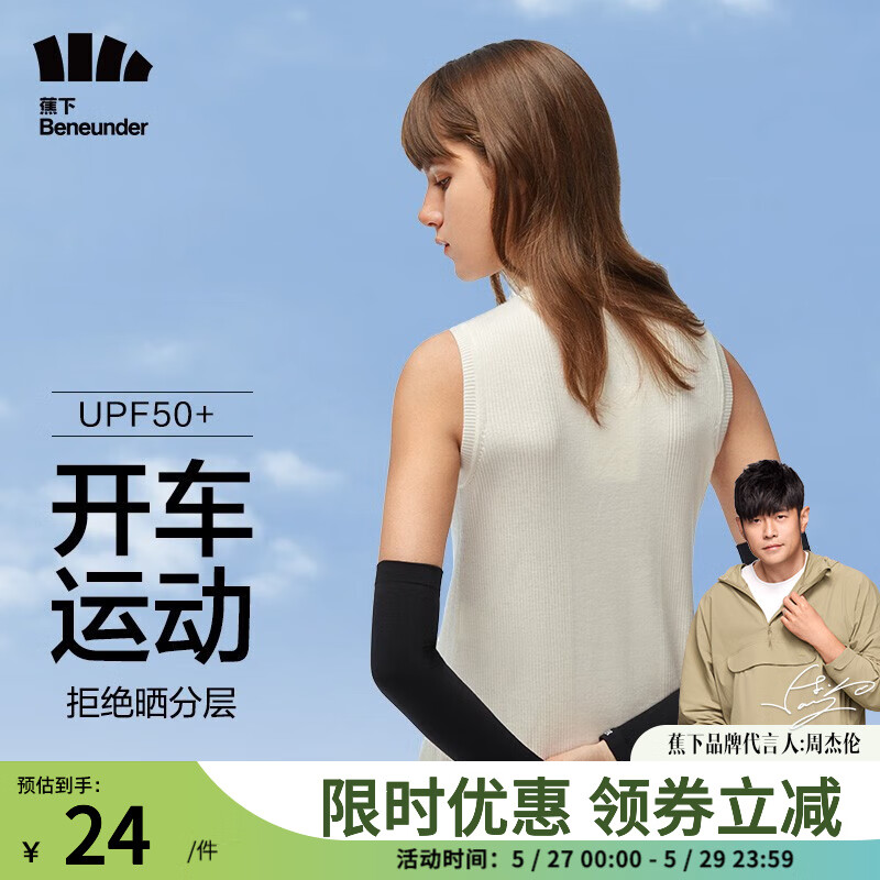 ¥34 蕉下(beneunder)防晒袖套夏季防晒手套冰丝袖套防紫外线袖套 【男女同款】云碳黑 54