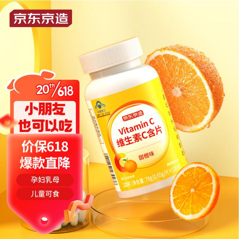 ¥19.9 京东京造 维生素C含片甜橙味120片 儿童孕妇乳母可用VC补充维生素C 29.9