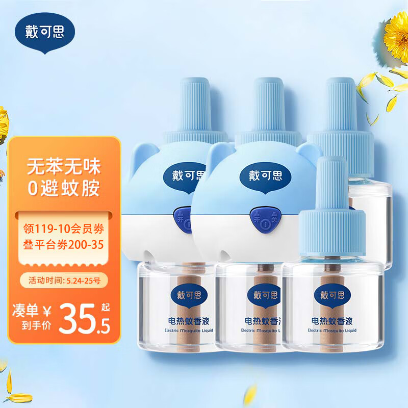 ¥37 戴·可·思(Dexter)电热蚊香液 宝宝驱蚊液套装无香型 电热蚊香液套装(2器+6液) 49