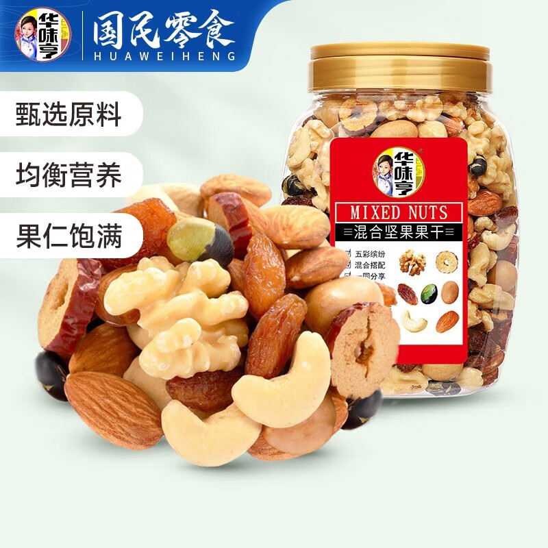 ¥19.9 华味亨混合坚果果仁合家款500g/罐 腰果巴旦木核桃仁每日坚果休闲零食 29.9