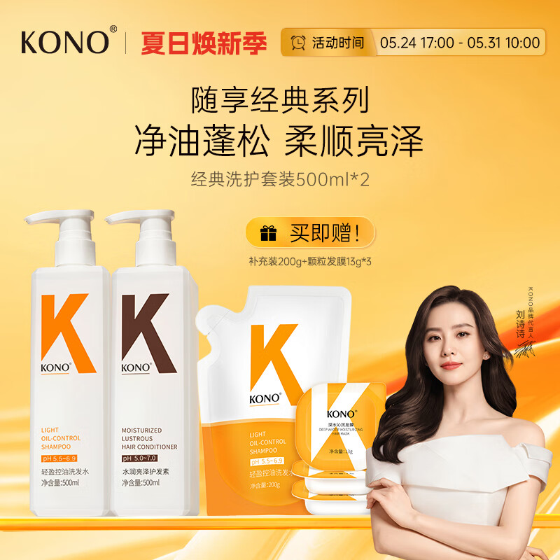 ¥89 KONO经典控油水润洗护套装 清爽去油温和清洁水润呵护蓬松洗发露香味 99