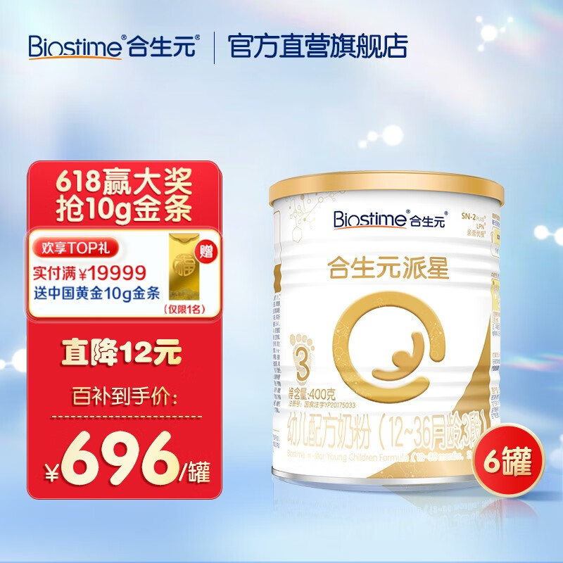 ¥646 合生元(BIOSTIME)【官方直营]派星幼儿进口配方奶粉3段 12-36月 2400(400g*6) 696